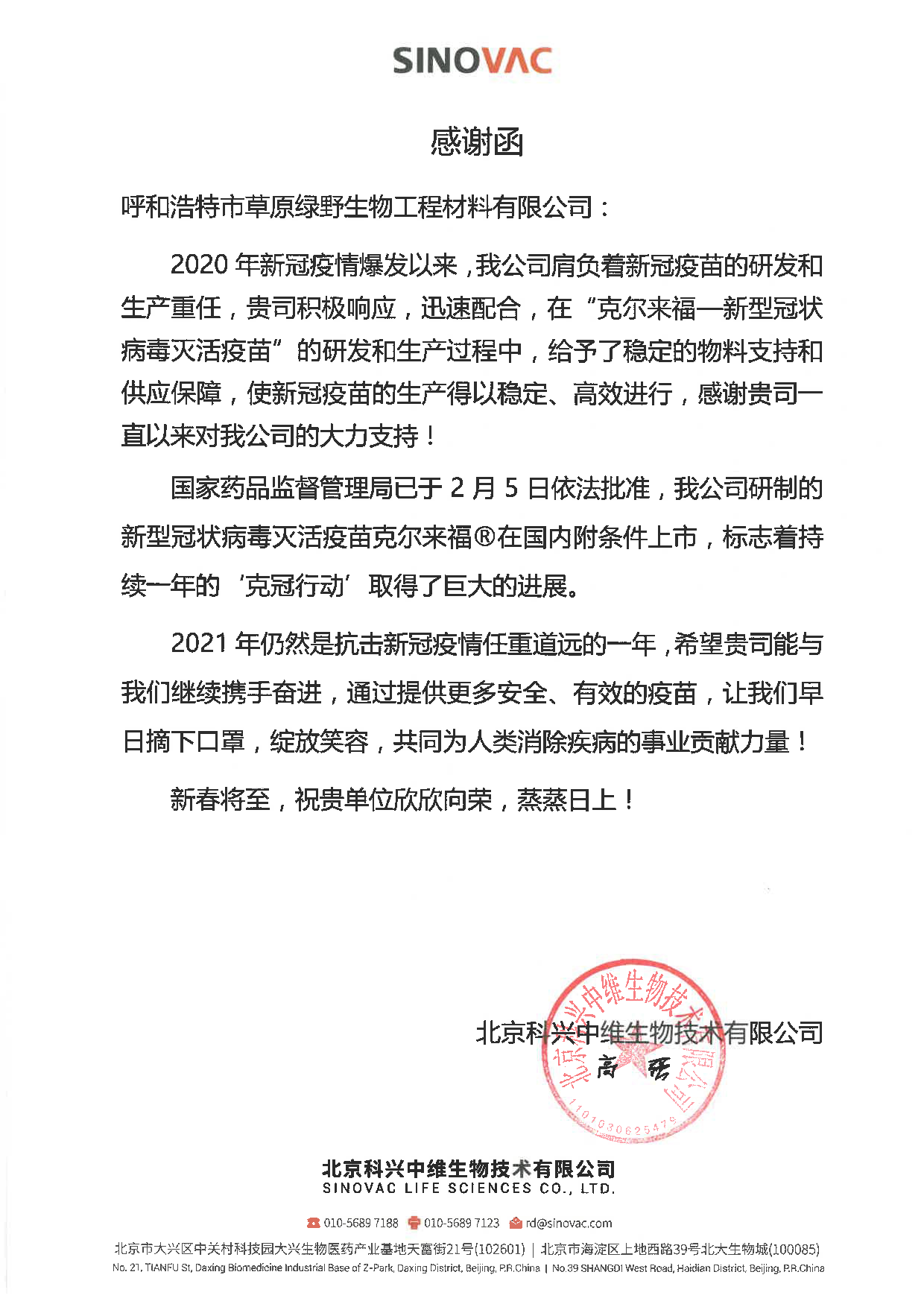 呼和浩特市草原綠野生物工程材料有限公司成立于1984年5月(前身為山西省宏偉血清廠),40余年匠心專注動物血清、培養基、生物制品研發、生產、銷售和服務為一體的國家高新技術企業、重點龍頭企業、專精特新企業、科技型企業、企業研究開發中心、創新型中小企業等。