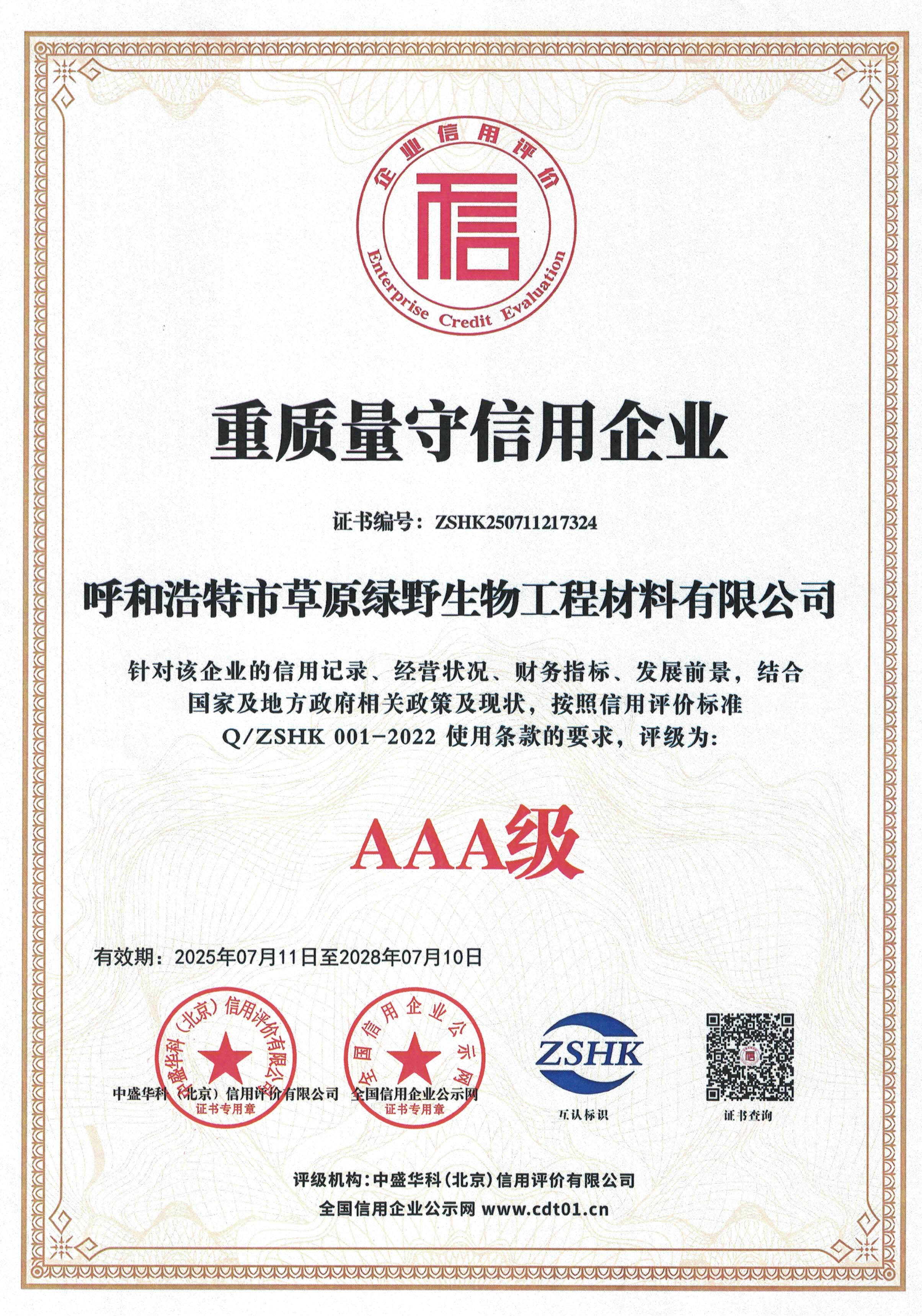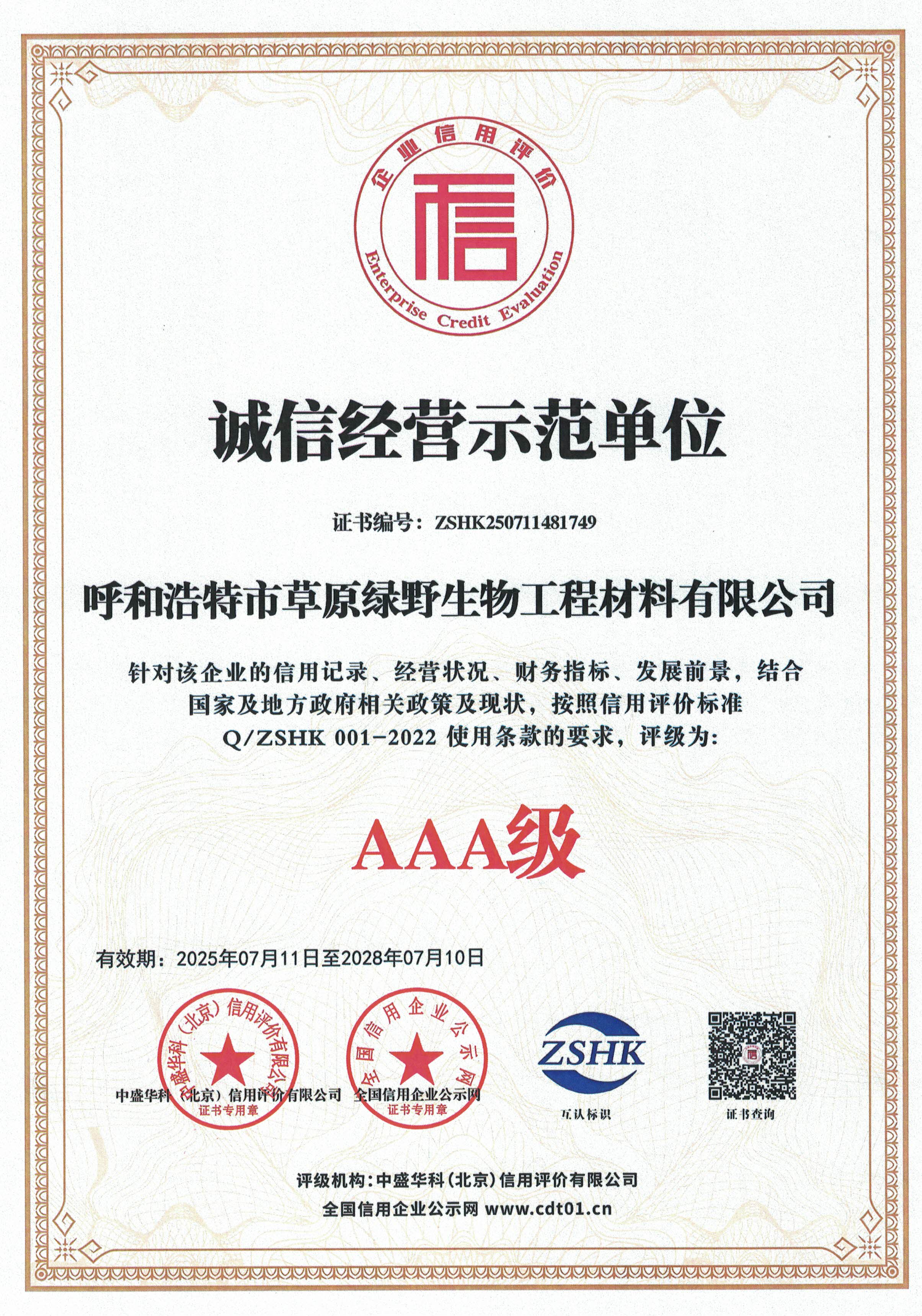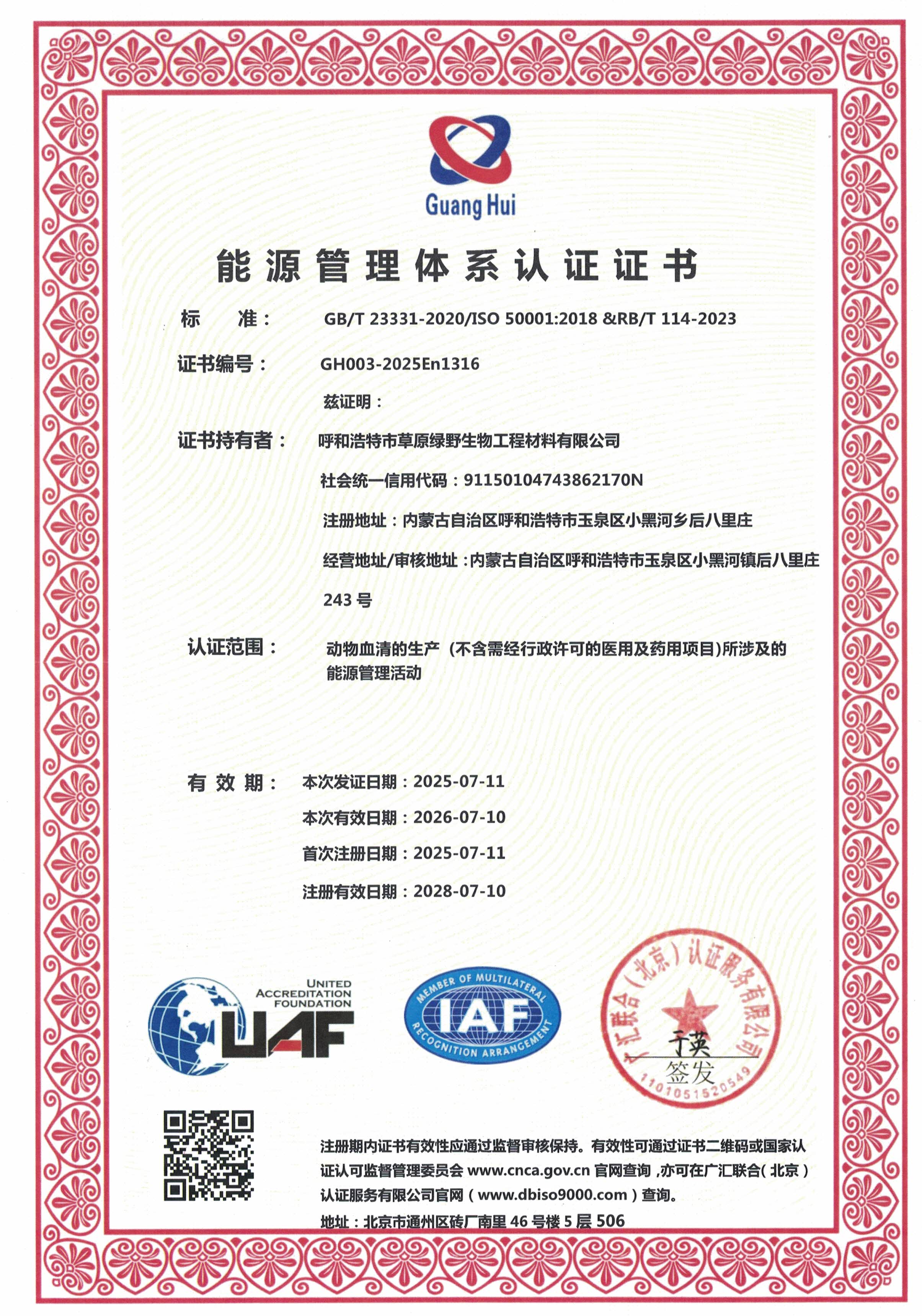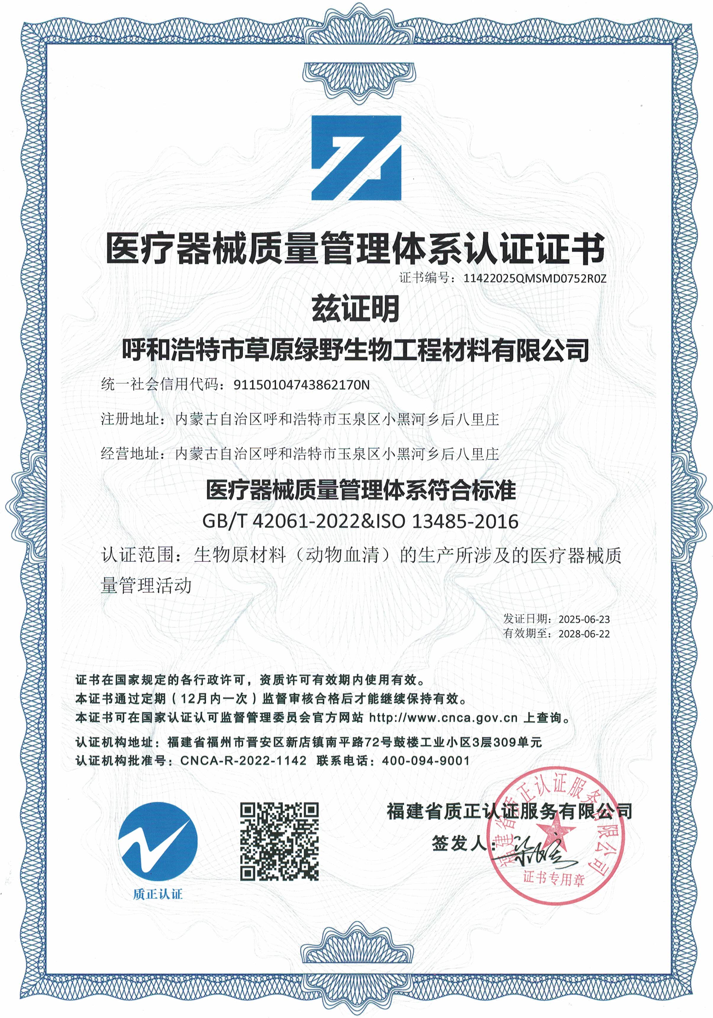 公司至今已多次通過中國醫藥生物技術協會《牛血清生產企業達標》認證、《牛血清生產質量達標企業》認證。ISO9001質量管理體系認證、ISO45001職業健康安全管理體系認證、ISO14001環境管理體系認證、ISO13485醫療器械質量管理體系認證、ISO50001能源管理體系認證、GB/T29490知識產權合規管理體系認證、AAA級信用企業認證、A級納稅單位評審等。